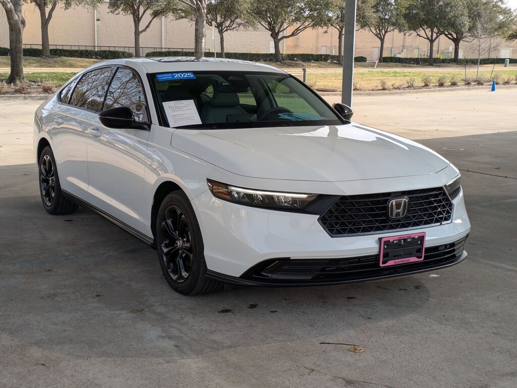 Contact AutoNation Honda Lewisville today for information on dozens of vehicles like this 2025 Honda Accord Sedan SE. This Honda includes: PLATINUM WHITE PEARL *Note - For third party subscriptions or services, please contact the dealer for more information.* This vehicle has surpassed all inspections to achieve Certified Pre-Owned status. Driven by many, but adored by more, the Honda Accord Sedan SE is a perfect addition to any home. Surprising quality accompanied by a high level of performance...this Platinum White Pearl on Gray Honda Accord Sedan SE could end up being the perfect match for you.